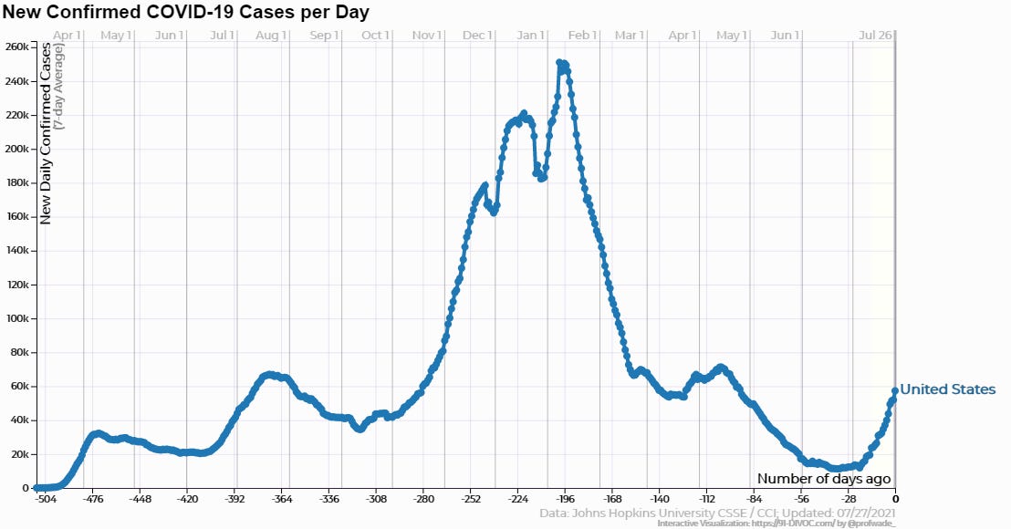 With the CDC issuing new mask guidance yesterday recommending a return to masking indoors for both vaccinated and unvaccinated, it seems a good time to take stock of where we are in the United States and globally with respect to Covid-19.
